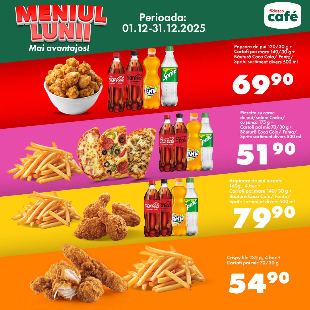 Meniul lunii la Fidesco – combinații delicioase de fast food la prețuri speciale!